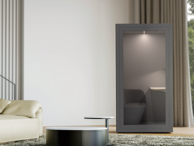 Vieno žmogaus patogi akustinė kabina biurui ir namams