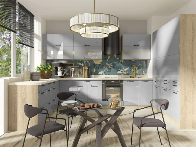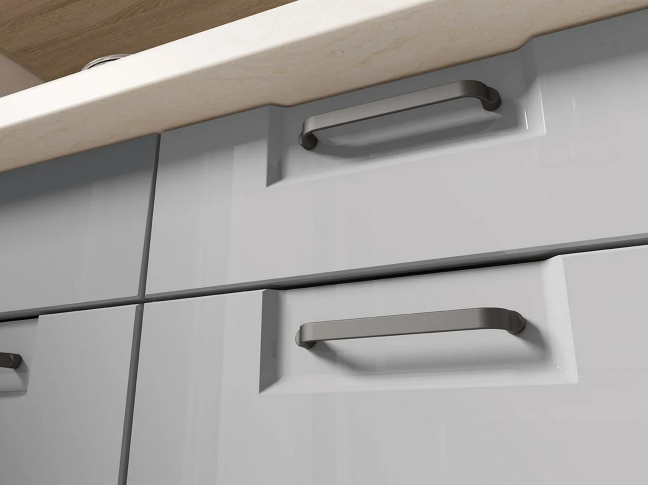 - Dujiniai viršutinių spintelių pakėlimo mechanizmai, metalinės rankenėlės, reguliuojami viršutinių spintelių laikikliai.