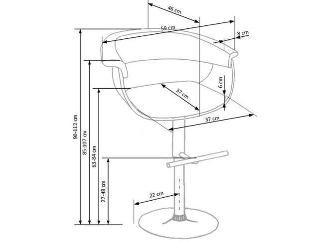 - Bendri išmatavimai (Plotis/Gylis/Aukštis): 59 cm / 46 cm / 90-112 cm