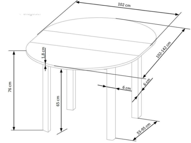 - Bendri išmatavimai (Ilgis/Plotis/Aukštis): 102-142 cm / 102 cm / 76 cm