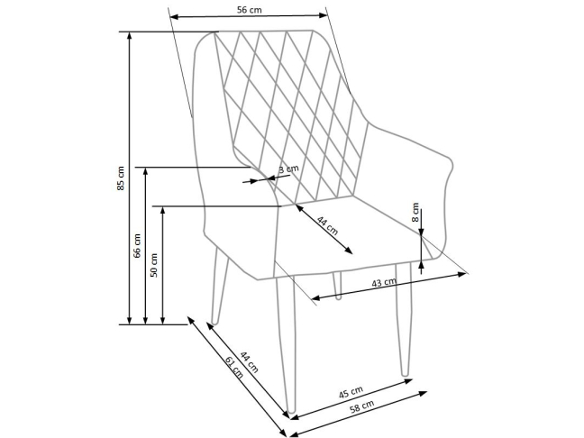 • Bendri išmatavimai (Plotis/Gylis/Aukštis): 58 cm / 61 cm / 85 cm