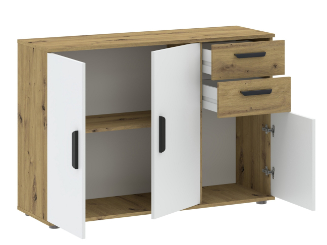 - Medžiaga: MFP- E1 emisijos medžio drožlių plokštė, kraštai ABS, plastikinės rankenos ir kojelės.