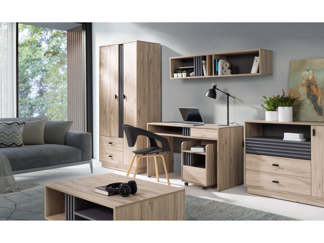 - Medžiaga: Laminuota medžio drožlių plokštė - (LMDP), ABS kraštai, rankenos metalinės.