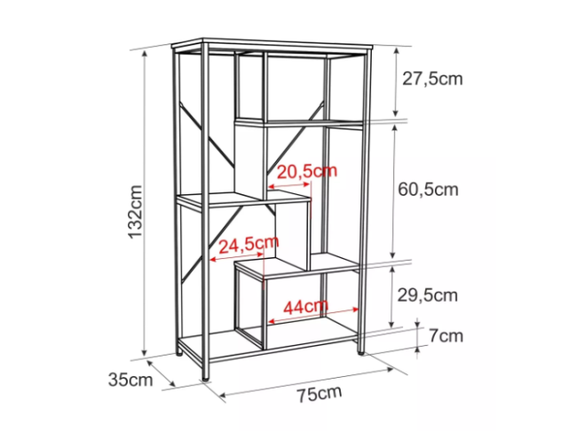 - Bendri išmatavimai (Aukštis/Plotis/Ilgis): 132 cm / 35 cm / 75 cm