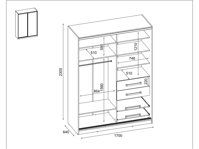 - Bendri išmatavimai (plotis/aukštis/gylis): 170 cm / 230 cm / 64 cm