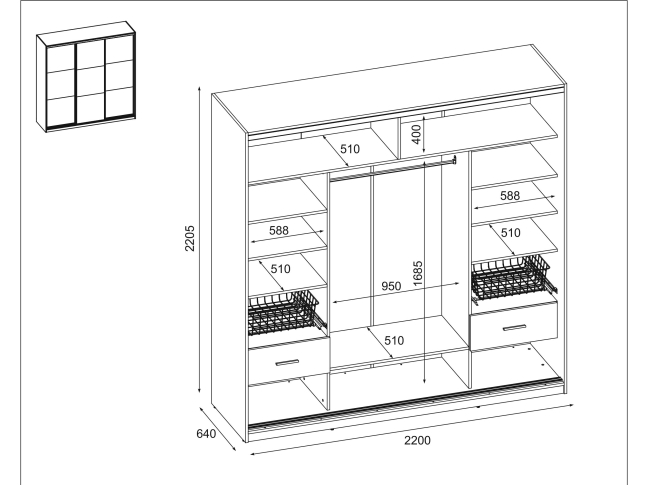 - Bendri išmatavimai (plotis/aukštis/gylis): 220 cm / 220 cm / 64 cm