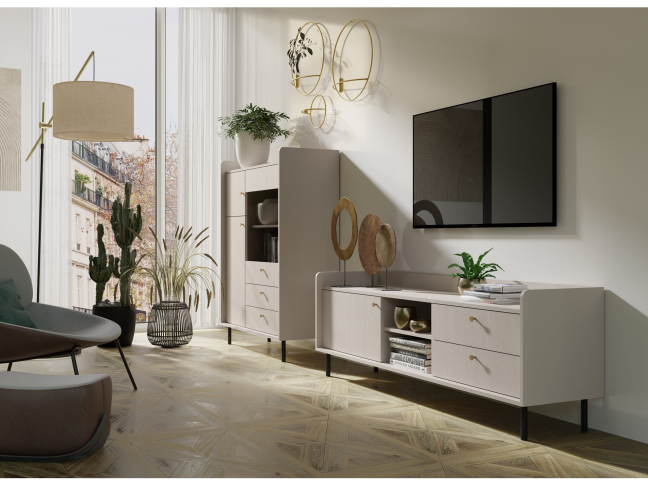 - Medžiaga: Laminuota medžio drožlių plokštė - (LMDP), ABS kraštai, kojelės/rankenėlės - metalinės.
